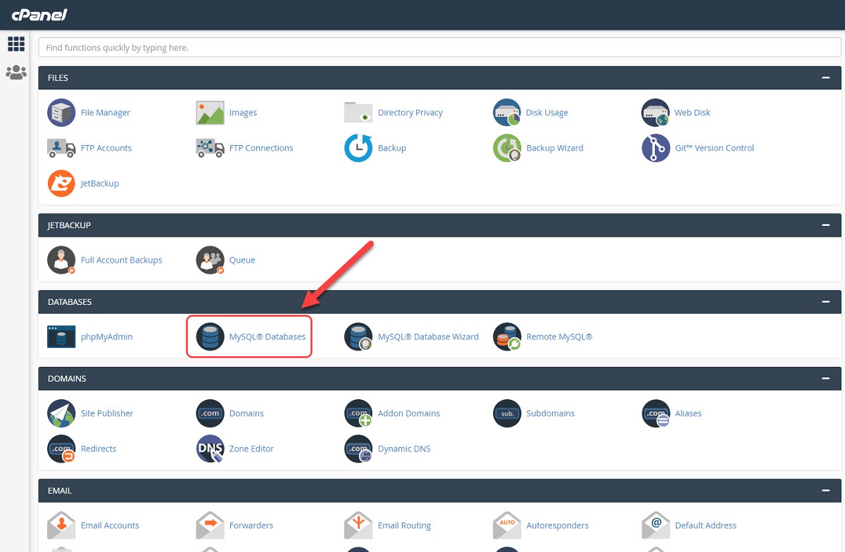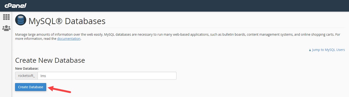 Go to “MySQL Databases” and create a database according to the following screenshot: